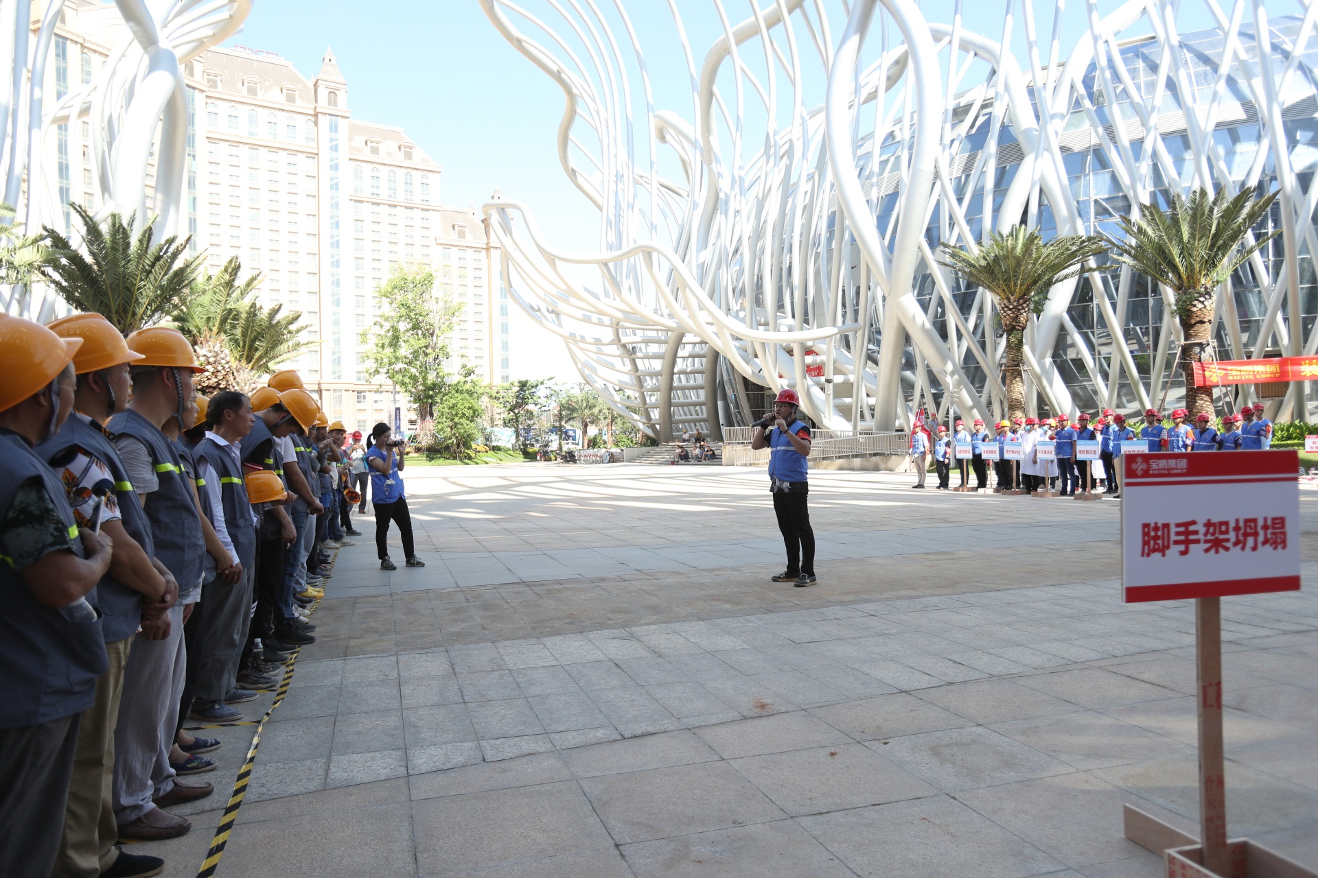 儋州市白馬井應(yīng)急大隊(duì)分隊(duì)長王佳文,恒大集團(tuán)海花島公司副總經(jīng)理吳海,國會項(xiàng)目工程部經(jīng)理張光成,寶鷹集團(tuán)質(zhì)安管理部以及?;◢u項(xiàng)目建設(shè)人員等近300人參與活動。
