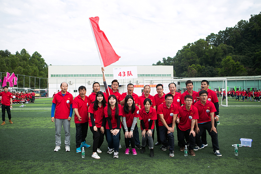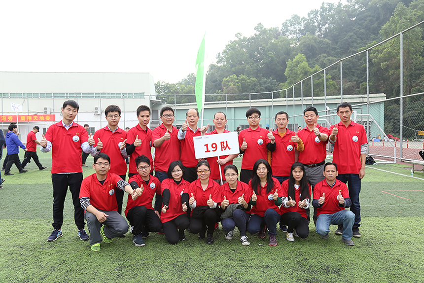 ▲寶鷹集團董事局主席古少明與部分十年以上資深員工拍照合影