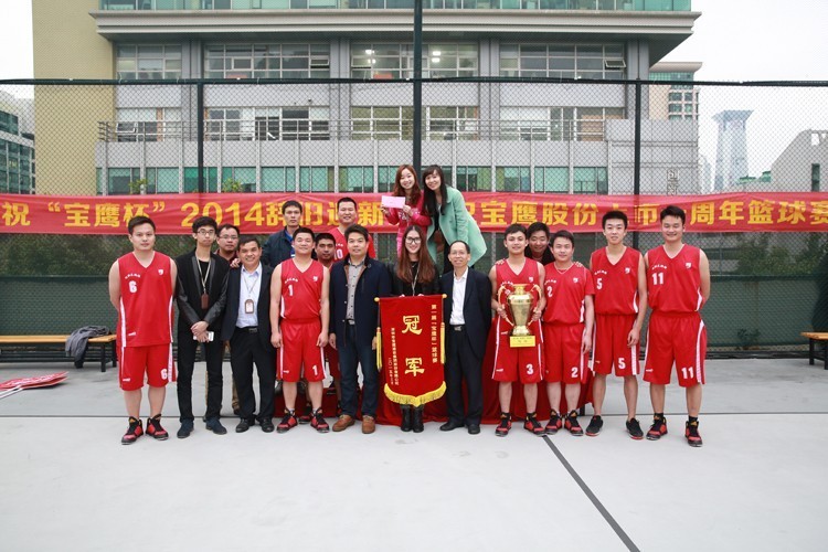 3 月4日下午,“寶鷹杯”2014辭舊迎新暨慶祝寶鷹股份上市一周年籃球賽總決賽于深圳車公廟OWIN球場舉行。寶鷹集團董事長古少波、工會主席溫武艷、監(jiān)事會主席胡蘭萍等領導蒞臨決賽現(xiàn)場并為獲獎球隊頒獎。