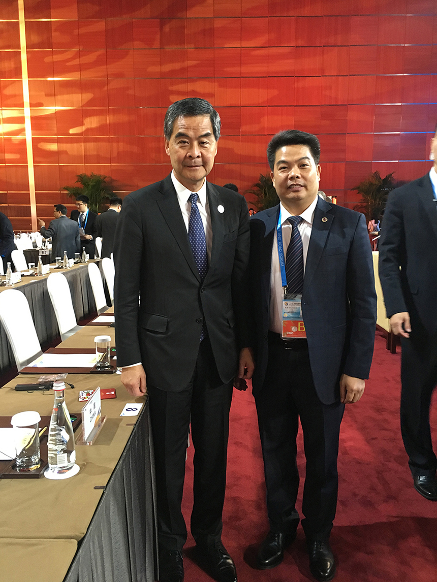 ▲寶鷹股份董事長古少波與全國政協(xié)副主席、香港特區(qū)行政長官梁振英合影