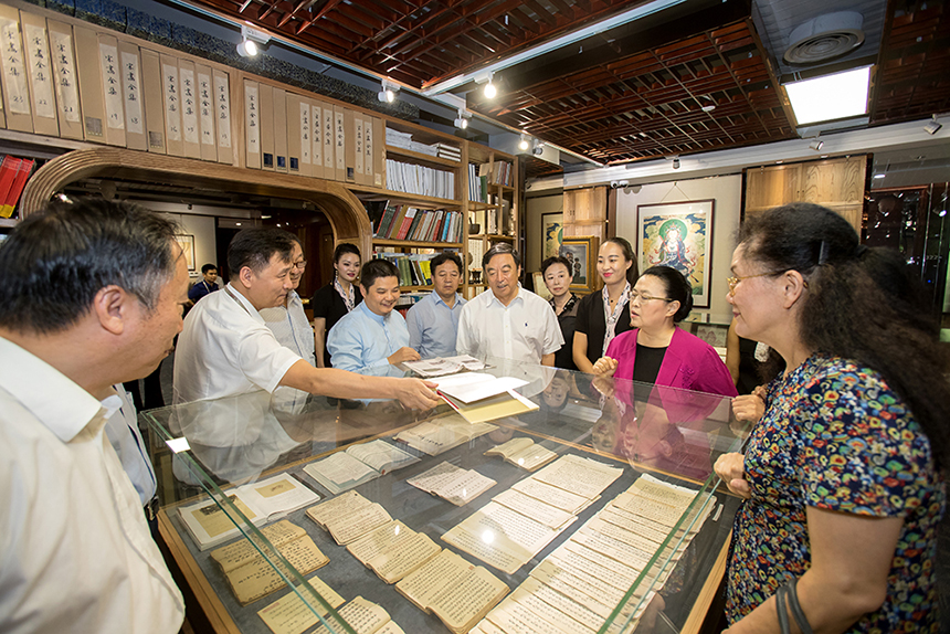▲全國(guó)政協(xié)科教文衛(wèi)體委員會(huì)副主任、中國(guó)經(jīng)濟(jì)社會(huì)理事會(huì)副主席張秋儉一行參觀寶鷹集團(tuán)辦公環(huán)境及寶鷹美術(shù)館