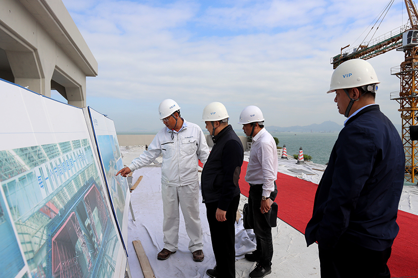 12月1日,為確保公司承建的港珠澳大橋東人工島主體建筑裝飾裝修工程在2017年12月25日前竣工,以保障港珠澳大橋2017年12月底具備通車條件,寶鷹集團(tuán)副總裁古樸、于泳波趕赴一線考察港珠澳大橋東人工島工程項(xiàng)目進(jìn)度,并在項(xiàng)目部召開沖刺誓師大會。