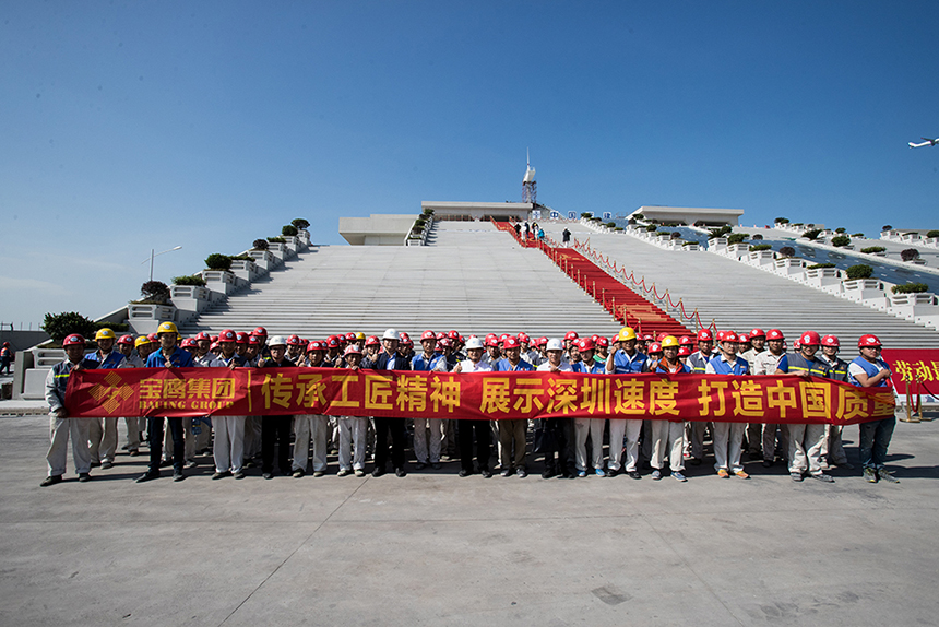 在隨后召開的誓師大會上,寶鷹集團(tuán)總裁古樸為項(xiàng)目部人員加油打氣,鼓勵項(xiàng)目部人員協(xié)同作戰(zhàn),攻堅(jiān)克難。他表示,寶鷹集團(tuán)自承接項(xiàng)目工程以來,面臨時(shí)間緊,任務(wù)重等多重問題。百人攻堅(jiān)克難,背水一戰(zhàn)。在環(huán)境極端惡劣的情況下,寶鷹人不畏艱難,積極應(yīng)對各種挑戰(zhàn),做好了各項(xiàng)防控防風(fēng)險(xiǎn)措施。一切致力于做到精益求精,嚴(yán)格管控,杜絕絲毫誤差。寶鷹人要向世界展示企業(yè)實(shí)力和品質(zhì)高度,全力以赴投入此項(xiàng)目,發(fā)揮以“智、敏、勇”為核心的企業(yè)文化精神,傳承工匠精神,展示深圳速度,打造中國質(zhì)量!