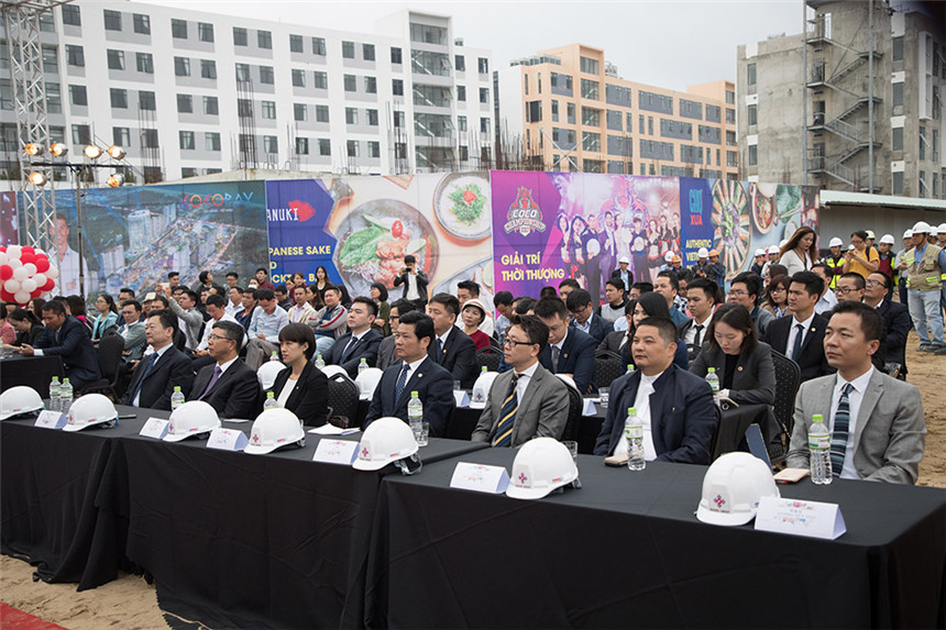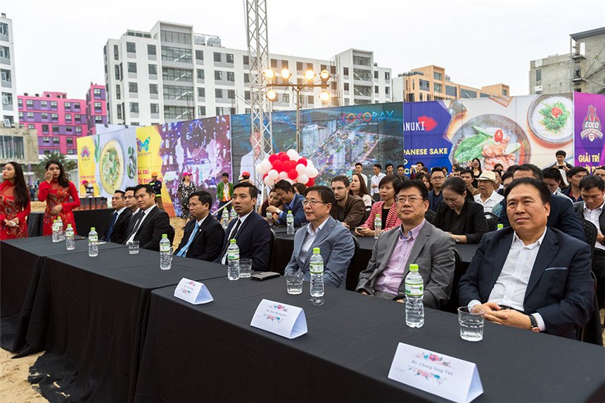 中國(guó)駐峴港總領(lǐng)事館副總領(lǐng)事劉志、副領(lǐng)事李盈盈,峴港市規(guī)劃發(fā)展局局長(zhǎng)黎景陽(yáng),越南成都投資開發(fā)與建設(shè)股份公司總經(jīng)理阮成南、副總經(jīng)理鄭越興,深圳市裝飾行業(yè)協(xié)會(huì)會(huì)長(zhǎng)高剛,寶鷹集團(tuán)董事局主席古少明等領(lǐng)導(dǎo)出席奠基儀式。