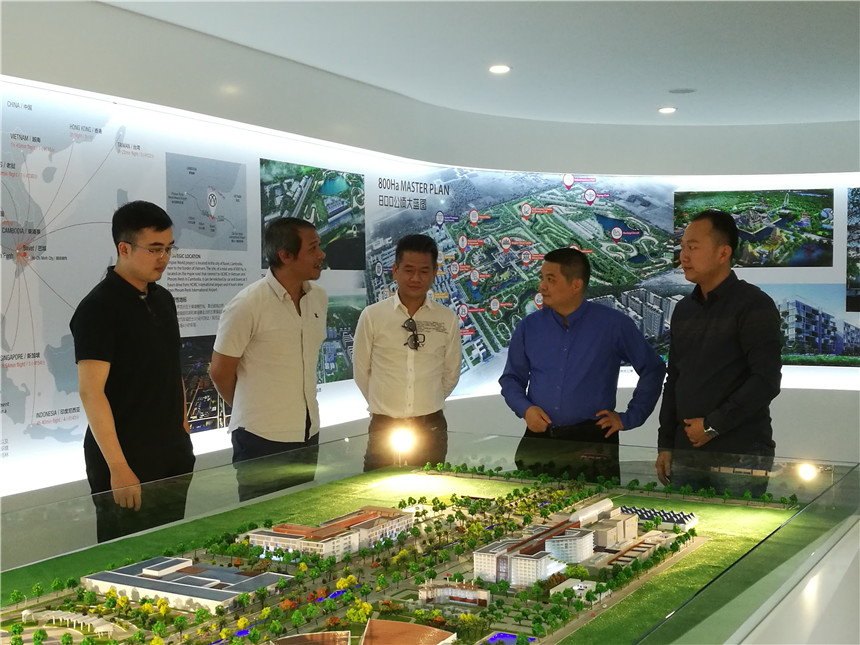 ▲寶鷹集團副總裁古樸(右二)與柬埔寨帝盛世界集團首席執(zhí)行官呂汶錝(右一)就帝盛世界項目進行業(yè)務洽談