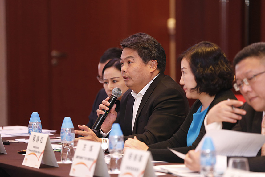 ▲寶鷹股份董事長古少波在圓桌會議上表示企業(yè)在“走出去”時更應(yīng)該以塑造和維護(hù)“中國品牌”為己任