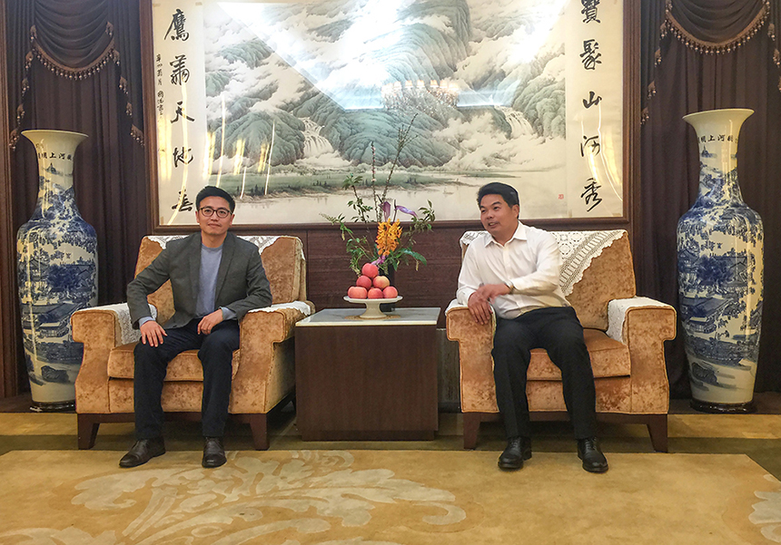 ▲古少波董事長陪同劉自鴻博士了解主營業(yè)務(wù)及企業(yè)文化