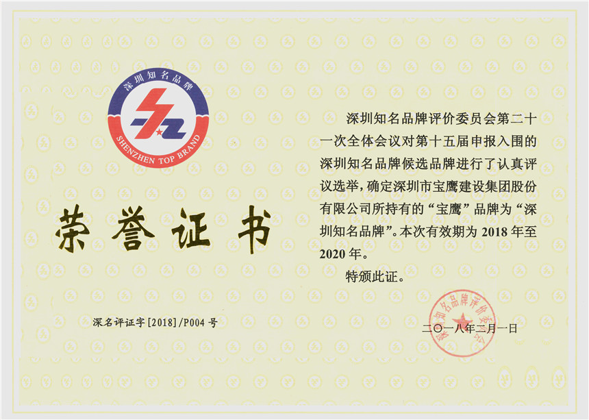 寶鷹集團(tuán)因在市場份額、誠信經(jīng)營、企業(yè)形象等方面的突出表現(xiàn),通過層層篩選,在來自信息技術(shù)、機器人、通用設(shè)備、醫(yī)療器械、物聯(lián)網(wǎng)、建筑裝飾、攝影器材、食品加工等40多個細(xì)分行業(yè)的215家評選企業(yè)中脫穎而出,榮獲“深圳知名品牌”稱號。