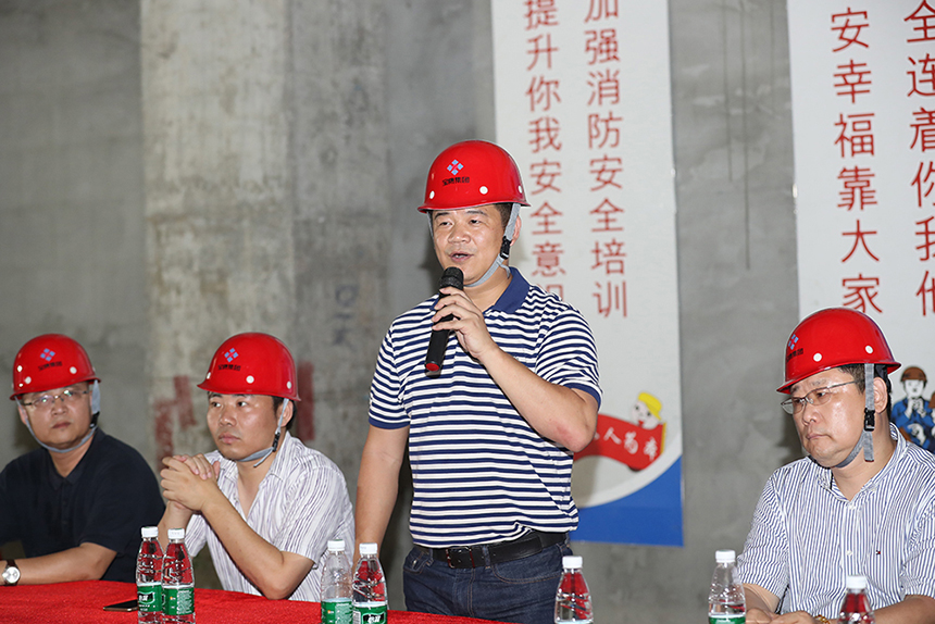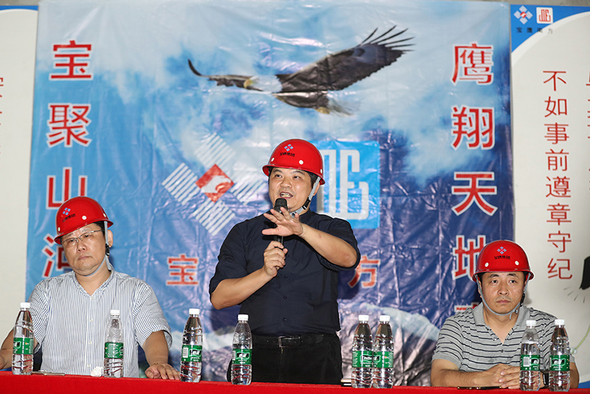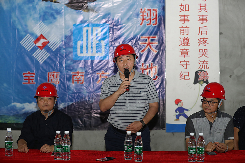 寶鷹集團副總裁古樸向全體項目員工發(fā)起號召,希冀大家團結一心、并肩作戰(zhàn)、攻堅克難,努力把星藝文創(chuàng)天地項目打造成集團2018年踐行深圳速度和質(zhì)量的標志項目、觀摩項目。全面發(fā)揮以“智、敏、勇”為核心的企業(yè)文化精神,傳承寶鷹工匠精神。嚴格落實安全生產(chǎn)責任制,人人都需要擔負起重要的監(jiān)督、示范責任。項目管理人員要對安全防范、隱患整改、督導檢查部署到位,以過嚴過硬的舉措確保萬無一失。三百六十行,行行出狀元,每個工種都是整體不可分割一部分,希望全體同事團結一心,協(xié)同作戰(zhàn),以決戰(zhàn)決勝的斗志全力打好百日攻堅戰(zhàn)!