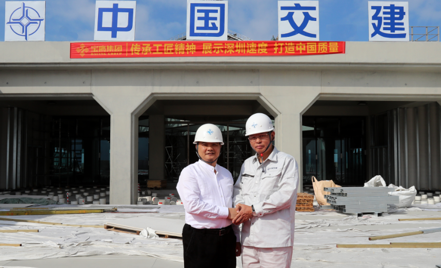 ▲中交三航局主任朱立新與寶鷹集團(tuán)副總裁古樸握手合影