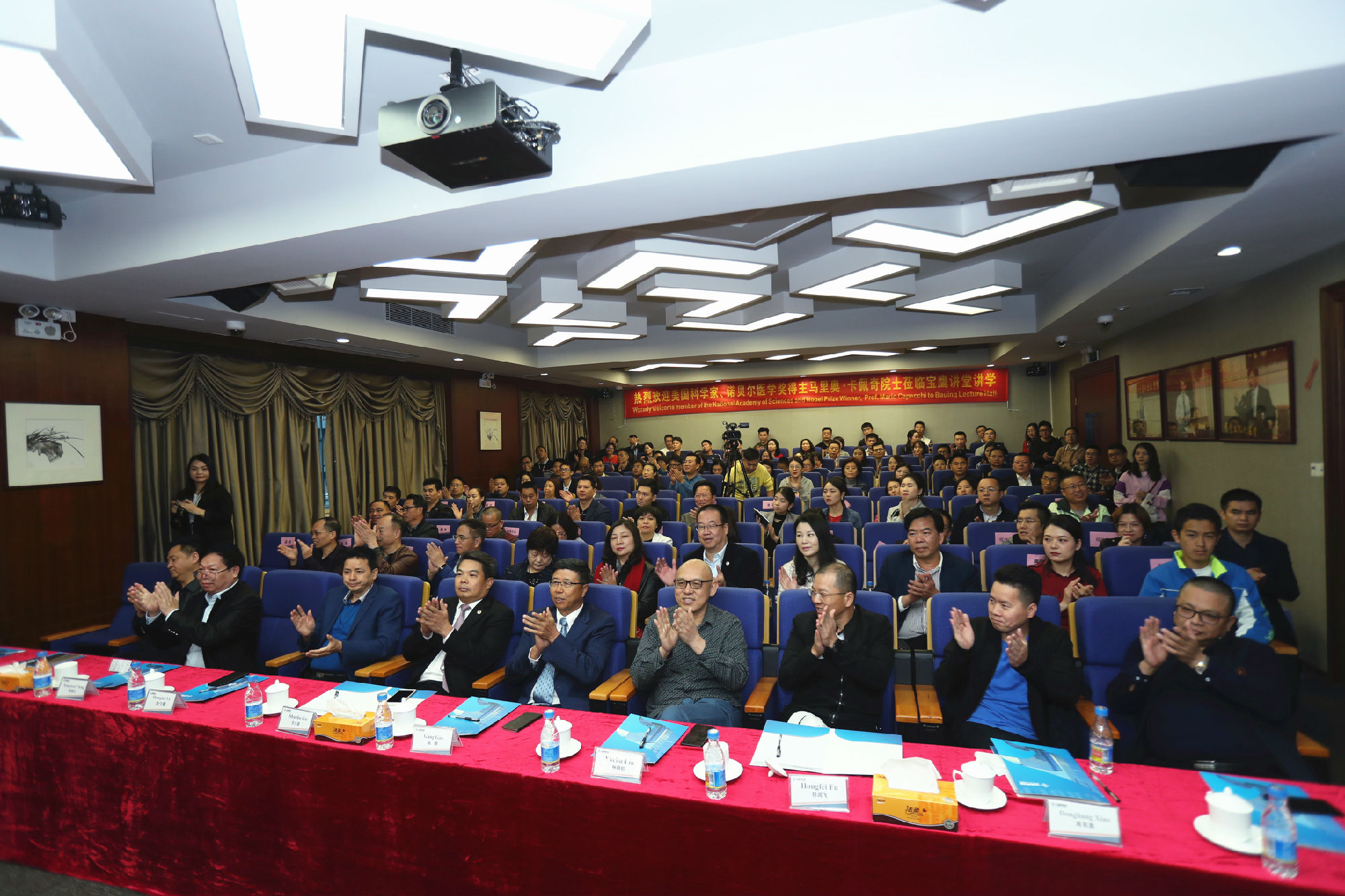 寶鷹集團副總裁古樸致歡迎詞。他說,卡佩奇院士是生物科學(xué)界的傳奇人物。1937年出生的他今年已是81高齡,按中國習(xí)俗,乃九九至尊之年。在座全是晚輩,為此,建議全體起立,鞠躬致敬!卡佩奇院士是干細胞研究領(lǐng)域的開創(chuàng)者與領(lǐng)軍人物,干細胞就是細胞之母,在必要條件下,干細胞可演化為身體的任何器官,這讓人不禁想起老子“道生一,一生二,二生三,再生萬物”的名言。三千年前的古老思想與最尖端的現(xiàn)代化科技,古今唱和,交相輝映。期待卡佩奇院士的講座,與我們分享他對生命的理解,對生命質(zhì)量的覺悟,以及他的傳奇經(jīng)歷。
