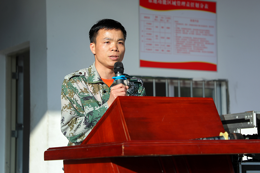 ▲優(yōu)秀項目經(jīng)理代表彭順強發(fā)言