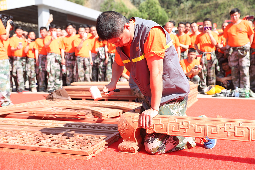 為了傳承發(fā)揚“工匠精神”,讓更多員工了解裝飾裝修及家居傳統(tǒng)工藝,寶鷹集團(tuán)還在大訓(xùn)期間舉辦了工匠技術(shù)展示活動,特邀請了行業(yè)中極具“工匠精神”和代表性的師傅們來到現(xiàn)場。打膠、石膏板封板、貼瓷磚、木床安裝等多項工種工藝大放異彩,吸引了眾多同事前來圍觀。
