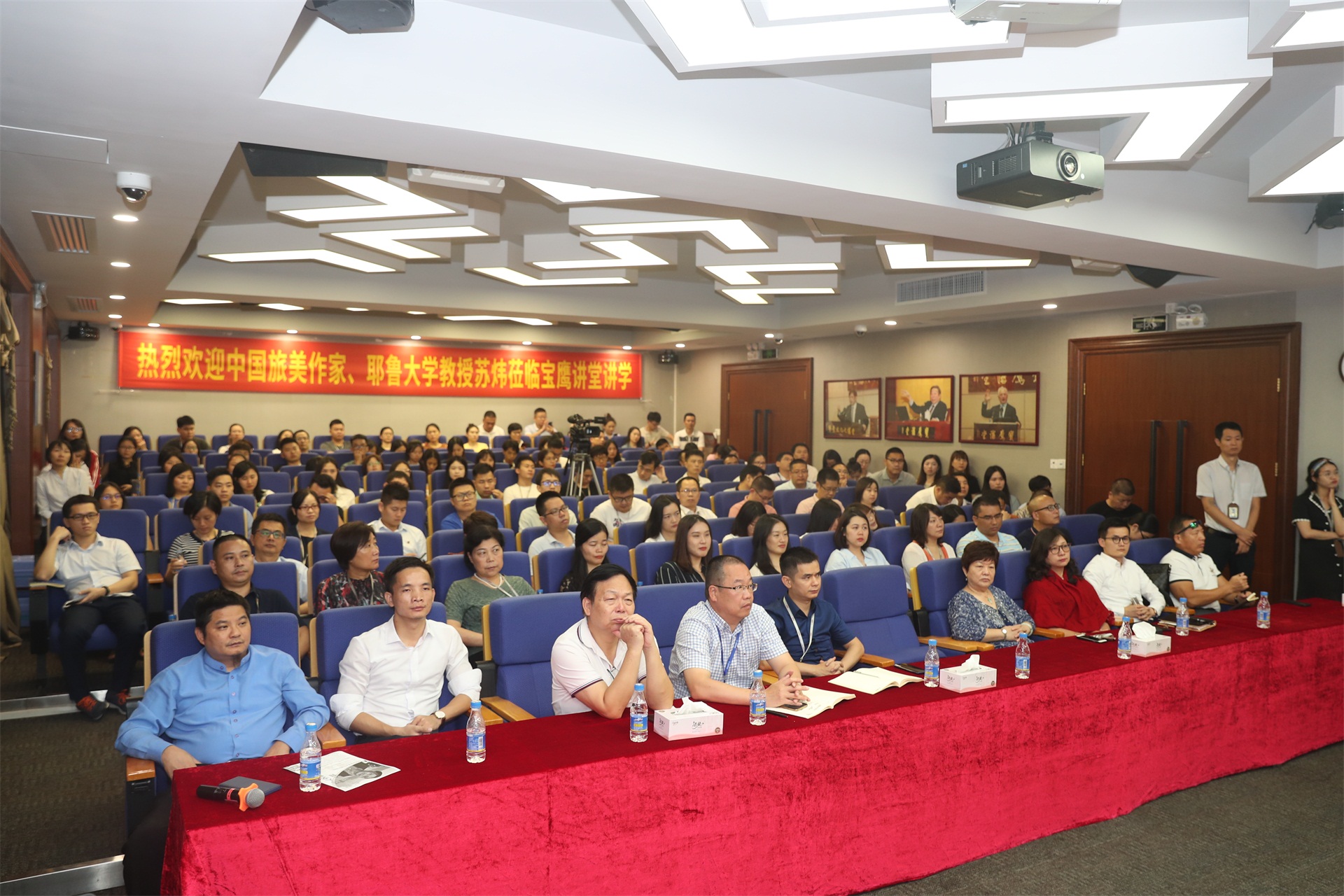 講堂中,蘇煒老師通過(guò)介紹耶魯大學(xué),并結(jié)合自己在耶魯大學(xué)的經(jīng)歷,解析了耶魯大學(xué)的人文精神與通識(shí)教育文化。