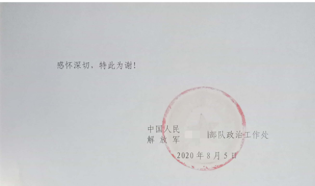 寶鷹集團的暖心行動得到了陳飛靈之子陳曉康所在部隊的高度肯定。其部隊發(fā)來的感謝函中提到,“這一舉動充分發(fā)揚了軍民團結一家親的‘雙擁’模范精神,積極展現(xiàn)了寶鷹集團負責擔當?shù)钠髽I(yè)形象” “你們以實際行動支持偉大的強軍事業(yè),致力幫助員工家庭尤其是軍人家庭解決現(xiàn)實困難問題,為軍人免去后顧之憂”。