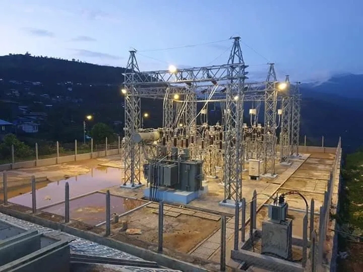 ▲試運行中的緬甸欽邦敏達—馬都比54英里66千伏輸電線路以及變電站工程