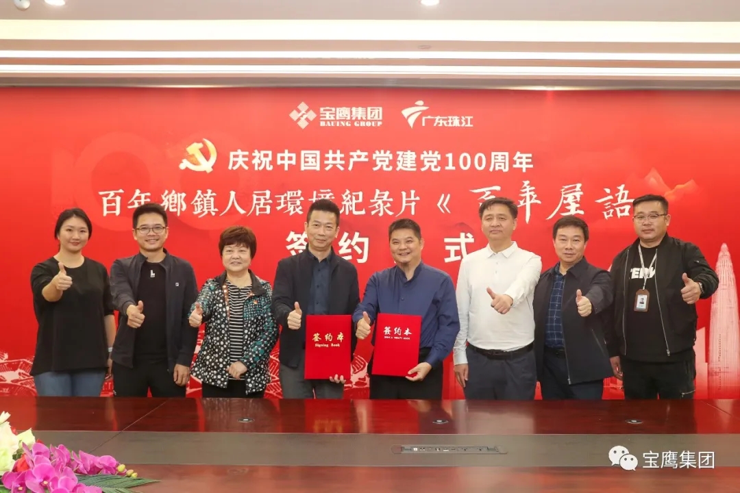 為慶祝中國(guó)共產(chǎn)黨建黨100周年,3月12日,由廣東廣播電視臺(tái)珠江頻道攜手深圳市寶鷹建設(shè)集團(tuán)股份有限公司聯(lián)合制作的百年鄉(xiāng)鎮(zhèn)人居環(huán)境紀(jì)錄片《百年屋語(yǔ)》在寶鷹集團(tuán)總部舉行簽約活動(dòng),借百年人居環(huán)境變化反映人民生活水平的提升。寶鷹集團(tuán)黨委委員、總裁于泳波,黨委委員、常務(wù)副總裁古樸出席簽約活動(dòng)。
