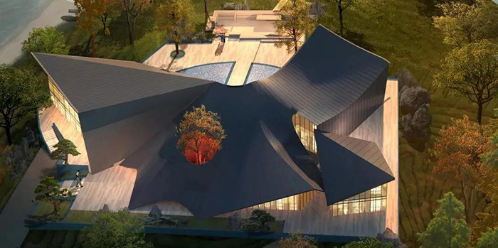 建筑將傳統(tǒng)翡翠雕刻的立體雕刻、鏈條雕刻和鏤空雕刻等工藝手法相結合,設計中充分結合業(yè)主要求最大化地最有效地利用土地資源,分析地塊形態(tài)和周邊環(huán)境,將建筑沿地塊長邊一字排開,遵從玉石雕刻中講究的“圖必有意,意必吉祥”的立意。根據建筑形態(tài),引用加法、減法和鏤空等手法,將傳統(tǒng)翡翠雕刻的工藝切割、穿插、鏤空雕刻工藝手法與現代設計手法相結合,高低錯落,呈現出舒展的韻律之美,結合景觀,自然地形成“山水”意向。