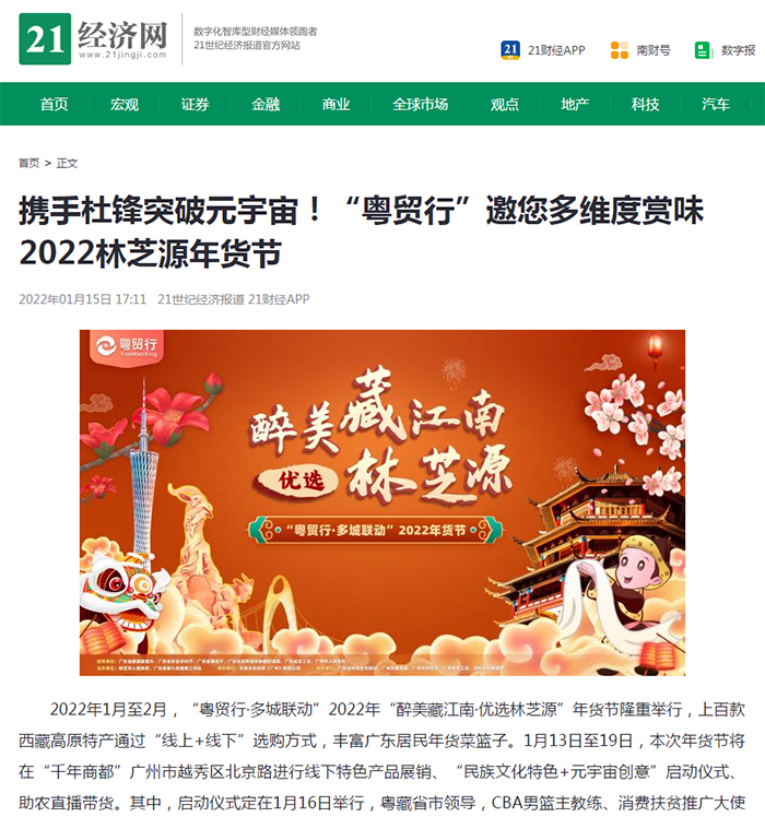 1月16日,“粵貿(mào)行·多城聯(lián)動(dòng)”2022年“醉美藏江南 · 優(yōu)選林芝源”年貨節(jié)在廣州北京路舉行線(xiàn)下啟動(dòng)儀式。寶鷹太平洋文旅科技AR技術(shù)、數(shù)字虛擬人物和設(shè)備亮相啟動(dòng)現(xiàn)場(chǎng),助力消費(fèi)援藏。