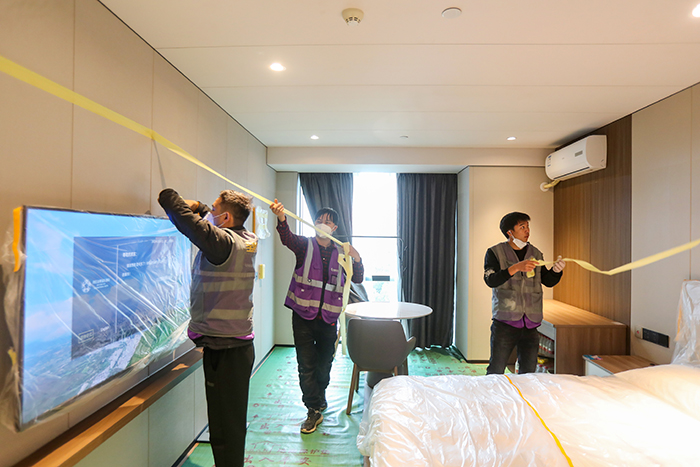 受到新一輪疫情的影響,時下,疫情防控正值關鍵時期。為了穩(wěn)定疫情防控大局,助力疫情防控大計,寶鷹集團聯(lián)手云記科技組建專業(yè)團隊,放棄春節(jié)假期,全力投入到灣區(qū)會展國際酒店自消殺抗新冠病毒功能材料的施工中,助力酒店筑牢疫情防控的“第一道防線”。