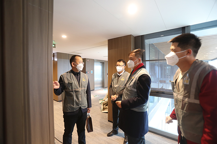 2月1日,農歷大年初一,寶鷹建設董事長薛依東、總裁于泳波、常務副總裁劉清松一行來到灣區(qū)會展國際酒店項目,檢查項目施工和疫情防控工作,看望慰問春節(jié)期間堅守崗位的一線建設者,并代表公司領導班子向節(jié)日期間奮戰(zhàn)在各條戰(zhàn)線的員工及家屬致以新春的問候和美好的祝福。