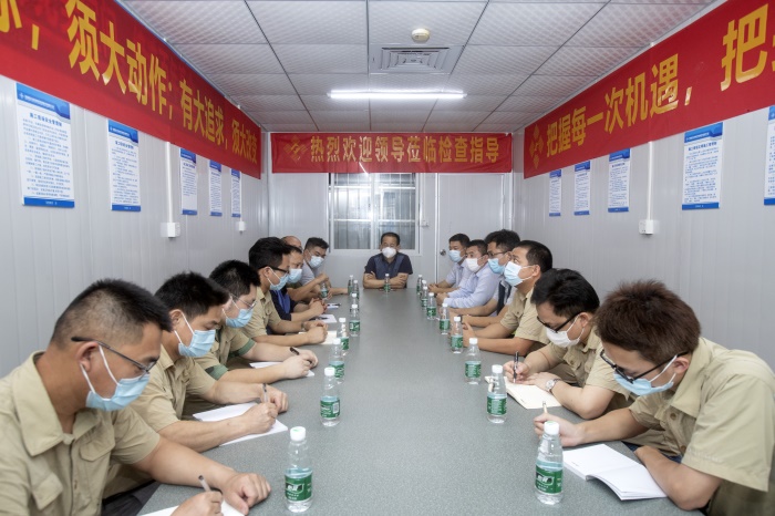 鐘志剛對項目建設提出具體要求,項目團隊要嚴格落實防疫要求,牢記甲方囑托,開足馬力搶工期,爭分奪秒抓進度,確保防疫生產(chǎn)“兩不誤”,用實際行動打造標桿工程。
