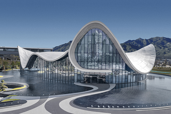 項目位于肇慶市鼎湖區(qū),總建筑面積5105平方米,定位為世界級度假目的地。其展示中心設計靈感來源于肇慶著名的風景區(qū)七星巖以及肇慶市花荷花。以特殊的建筑造型,成為展示國家度假區(qū)以及肇慶文化旅游的形象窗口。