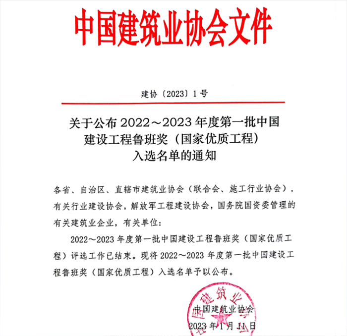 中國(guó)建筑業(yè)協(xié)會(huì)實(shí)施評(píng)選的獎(jiǎng)項(xiàng),是中國(guó)建筑行業(yè)工程質(zhì)量頒發(fā)的最高榮譽(yù)獎(jiǎng)。