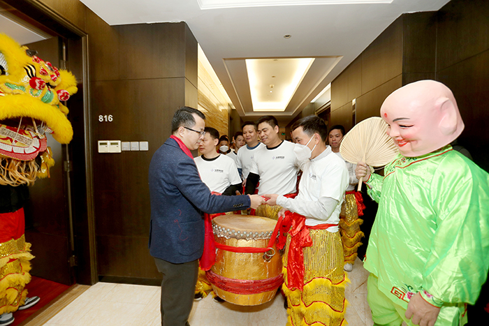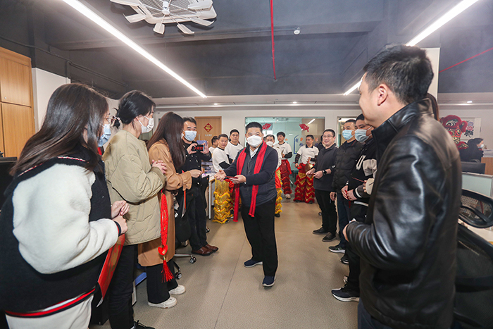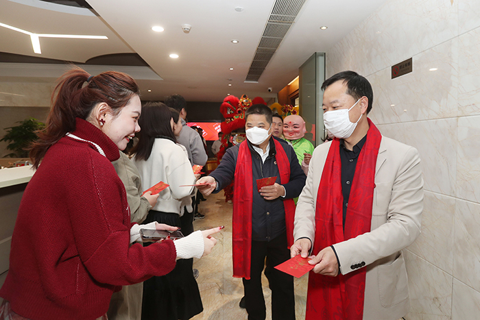 9點18分,伴隨著震耳的鞭炮聲和歡快的寶鷹醒獅隊鑼鼓聲,寶鷹股份副董事長兼總經(jīng)理古少波,寶鷹股份常務(wù)副總經(jīng)理、寶鷹建設(shè)董事長薛依東攜公司高管團隊向總部全體員工拜年,派發(fā)開工利是。懷著對未來的美好憧憬與期待,全體寶鷹人必將凝聚“一家人一條心一起干”的磅薄力量,擺出“開局就開戰(zhàn)、起步就起跑”的姿態(tài),同心同行啟航新征程。