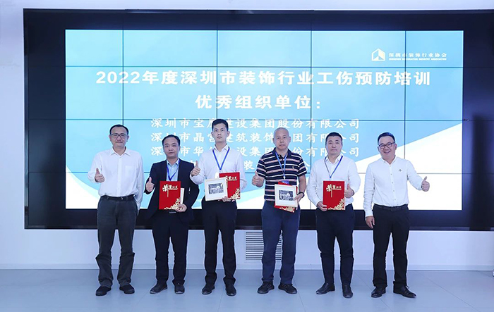 啟動會中,深圳市裝飾行業(yè)協(xié)會對2022年度工傷預(yù)防項目進行總結(jié),部署規(guī)劃了2023年度工傷預(yù)防項目工作,表彰了在2022年度工傷預(yù)防培訓(xùn)活動中表現(xiàn)突出的單位(四家)和個人(六人)。其中,寶鷹集團獲得優(yōu)秀組織單位稱號,來自寶鷹集團的曾山峰、汪峰獲得優(yōu)秀講師稱號。