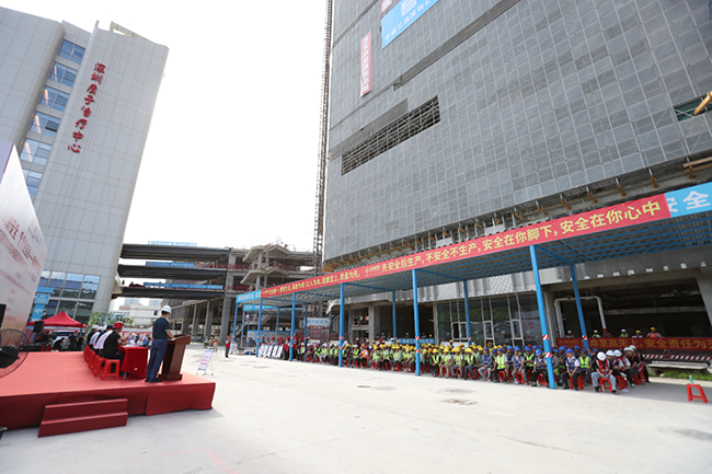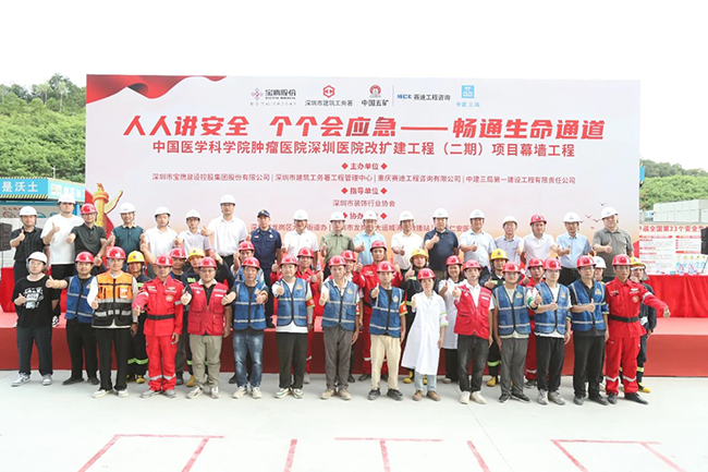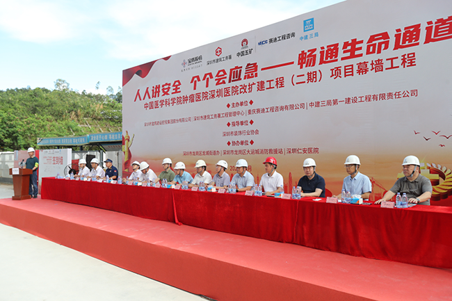 深圳市建筑工務(wù)署工程管理中心副主任符翔、項(xiàng)目工程師殷積彪,深圳市裝飾行業(yè)協(xié)會(huì)常務(wù)副會(huì)長(zhǎng)、總工程師王彥波、培訓(xùn)中心主任莫晉里,深圳市龍崗區(qū)龍城街道辦副主任程俊雄、副主任雷煥雄,深圳市龍崗區(qū)大運(yùn)城消防救援站副站長(zhǎng)何明,重慶賽迪工程咨詢(xún)有限公司大灣區(qū)分公司總經(jīng)理付光平,中建三局集團(tuán)(深圳)有限公司一公司安全總監(jiān)劉振曉,深圳仁安醫(yī)院常務(wù)副院長(zhǎng)吳云劍,深圳市寶鷹建設(shè)集團(tuán)股份有限公司董事長(zhǎng)肖家河、副總裁鐘志剛、安全管理部總監(jiān)陳龍、幕墻事業(yè)部總經(jīng)理韓偉杰、公司技術(shù)負(fù)責(zé)人葉石堅(jiān)等相關(guān)領(lǐng)導(dǎo)以及中國(guó)醫(yī)學(xué)科學(xué)院腫瘤醫(yī)院深圳醫(yī)院改擴(kuò)建工程(二期)幕墻項(xiàng)目建設(shè)者參加活動(dòng)。