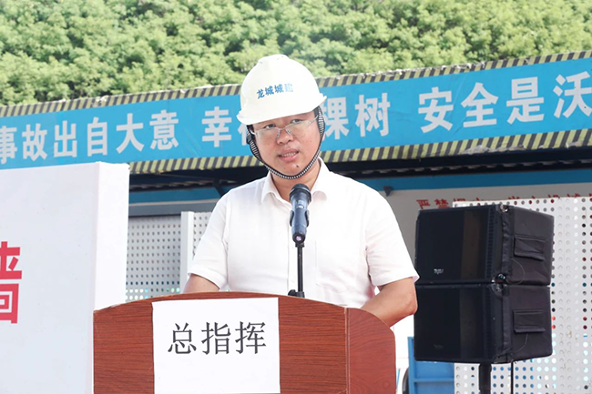 寶鷹建設(shè)集團(tuán)董事長(zhǎng)肖家河宣布演練開(kāi)始
