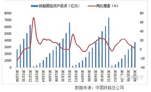 2015年1-8月,國家鐵路完成固定資產(chǎn)投資3786.3億元,同比增長2.4%,增速有所放緩。
