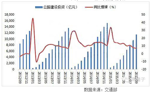 2015年前三季度公路建設(shè)完成投資11532.8億元,同比增長7.1%。