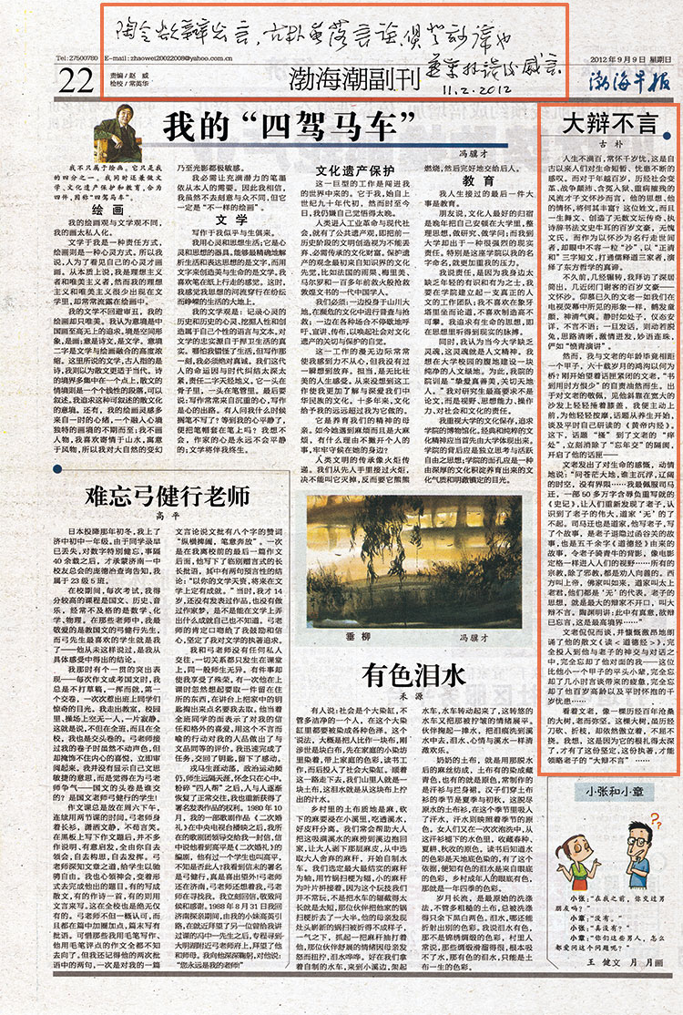 《人民日?qǐng)?bào)》、《渤海早報(bào)》等具有影響力報(bào)紙刊登古樸副總裁文章《大辯不言》