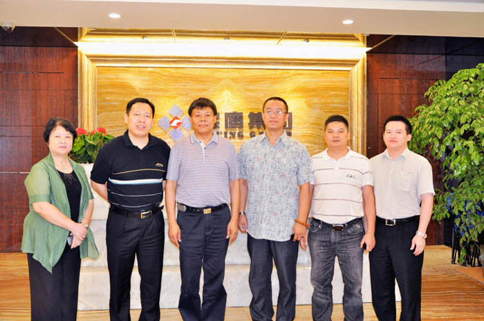陳新秘書長(左三)、劉原總工程師(右三)與常務(wù)副總裁許平(左二)、副總裁古樸(右二)、監(jiān)事會主席胡蘭萍(左一)合影留念