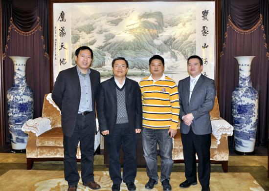 梁秘書長(zhǎng)(左二)與集團(tuán)常務(wù)副總裁許平(左一)、副總裁古樸(左三)合影