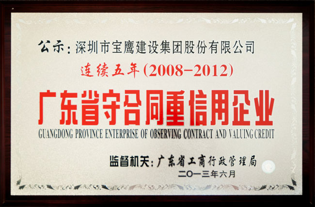 日前,廣東省工商行政管理局公示了榮獲2012年度守合同重信用企業(yè)名單,我司連續(xù)五年(2008—2012年)榮獲此項(xiàng)榮譽(yù)。