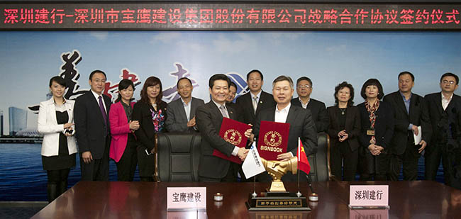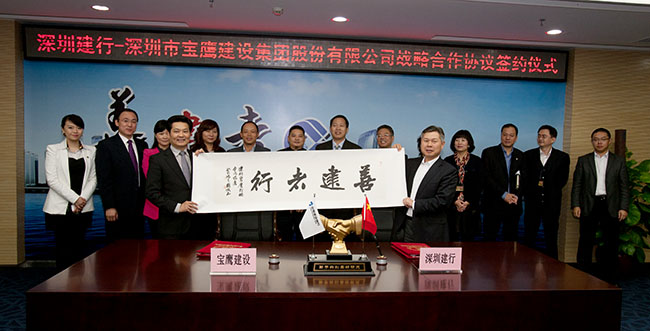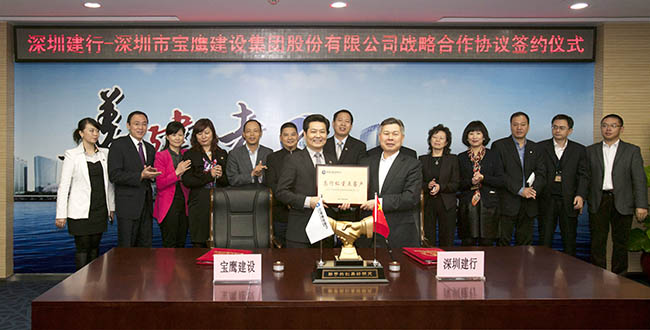 11月28日,中國建設銀行深圳市分行與深圳市寶鷹建設集團股份有限公司簽定了授信25億元的戰(zhàn)略合作協(xié)議。當日下午,在建設銀行深圳市分行與寶鷹股份相關出席領導的共同見證下,建設銀行深圳市分行副行長戴惠明和寶鷹股份董事局主席古少明分別代表建設銀行深圳市分行和寶鷹股份簽定了戰(zhàn)略合作協(xié)議。