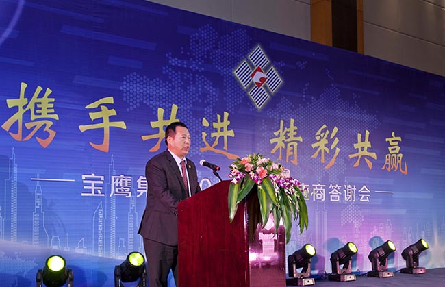 最后,古樸副總裁發(fā)表了熱情洋溢的祝酒辭,他對(duì)現(xiàn)場(chǎng)所有供應(yīng)商多年來(lái)與寶鷹股份結(jié)成的“攜手共進(jìn),精彩共贏”寶貴友誼表達(dá)了由衷的敬意和感謝,并期望以此次答謝會(huì)為契機(jī),增進(jìn)公司與供應(yīng)商之間的廣泛交流,推動(dòng)公司和行業(yè)的可持續(xù)發(fā)展。