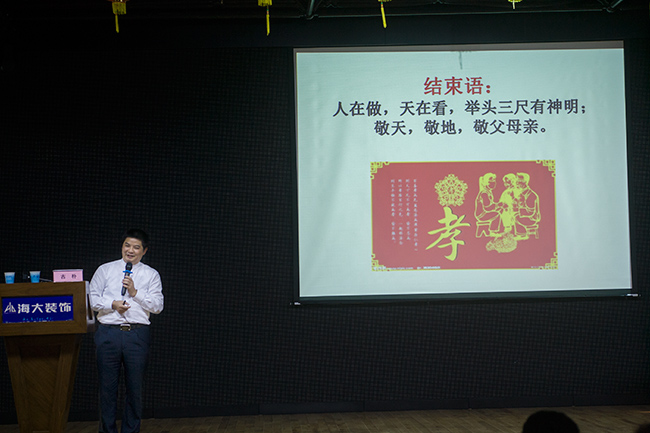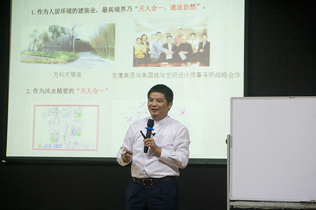 本次,來自包括寶鷹集團在內的7位深圳裝飾行業(yè)的專家教授以及200多學員參加了為期兩天的培訓。其中,寶鷹集團副總裁古樸為學員們帶來題為《天人合一》的精彩講座,讓學員們頓時耳目一新,掌聲不斷。講座中,古樸副總裁探討了天人合一的思想在建筑裝飾行業(yè)的現(xiàn)實意義。他介紹,建筑裝飾行業(yè)其實就是人居環(huán)境,其最高境界就是天人合一、道法自然,中國自古講風水,似乎很神秘不可測,而天人合一正是風水精要,風水其實就是古人環(huán)境選擇的學問,其核心是生態(tài)環(huán)境,要求在特定的小環(huán)境內部相互協(xié)調,以達到生態(tài)環(huán)境內部的統(tǒng)一。他還指出,天人合一的核心內涵就是以人為本,而以人為本的最高形態(tài)正是天人合一,必須同時看到此兩面,才可謂辯證統(tǒng)一。