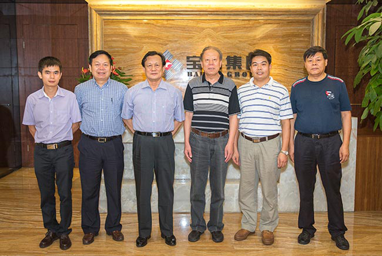 各位領(lǐng)導(dǎo)在寶鷹集團總部合影留念(圖中右三為中國建筑裝飾協(xié)會李秉仁會長、左三為中國建筑裝飾協(xié)會劉曉一常務(wù)副會長兼秘書長、右一為中國建筑裝飾協(xié)會陳新副會長、右二為寶鷹集團古少波董事長、左二為寶鷹集團成湘文總裁)