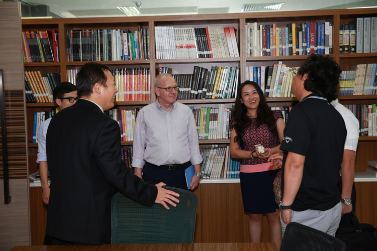 岡特?施特勞斯先生在和寶鷹集團設(shè)計院領(lǐng)導交談