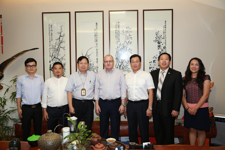 岡特?施特勞斯先生在和寶鷹集團領(lǐng)導交談