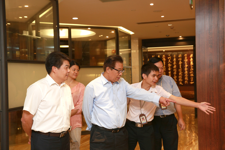 吳井田會(huì)長(zhǎng)在寶鷹集團(tuán)董事長(zhǎng)古少波、總裁成湘文的陪同下了解寶鷹集團(tuán)所取得的榮譽(yù)