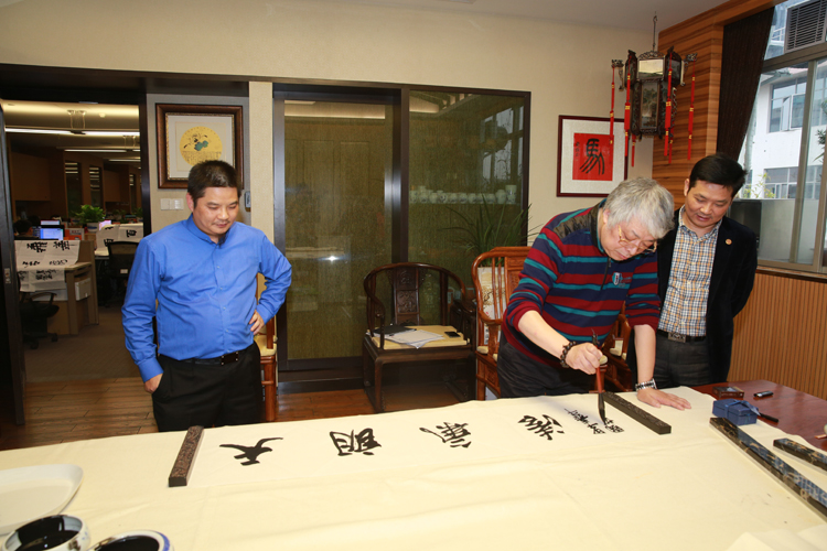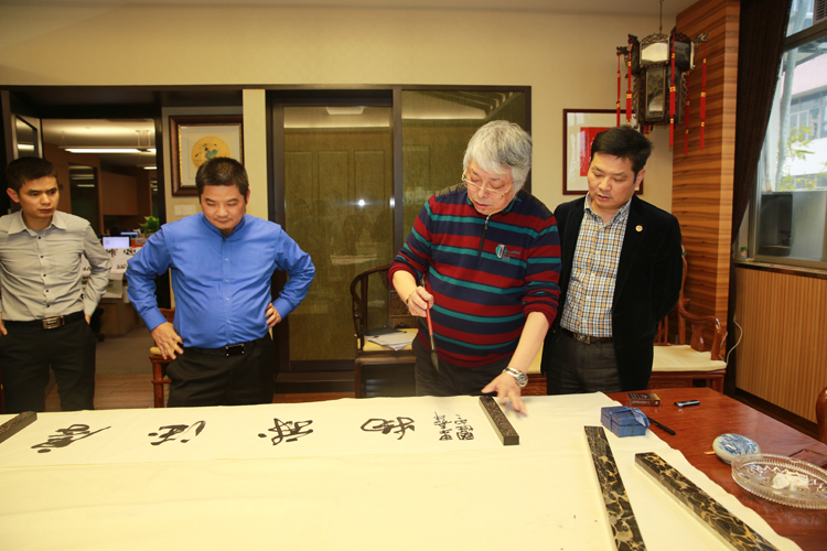 12 月25 日下午,中國書法家協(xié)會會員、廣州市美協(xié)主席、西泠印社理事、著名美術(shù)家、書法家周國城先生和中國書法家 協(xié)會會員、西泠印社社員、東莞市旗峰山藝術(shù)博物館館長王躍慶先生訪問了寶鷹集團(tuán),寶鷹集團(tuán)董事局主席古少明先生、監(jiān)事會主席胡蘭萍女士、副總裁古樸先生親切接待了周國城主席和王躍慶館長。