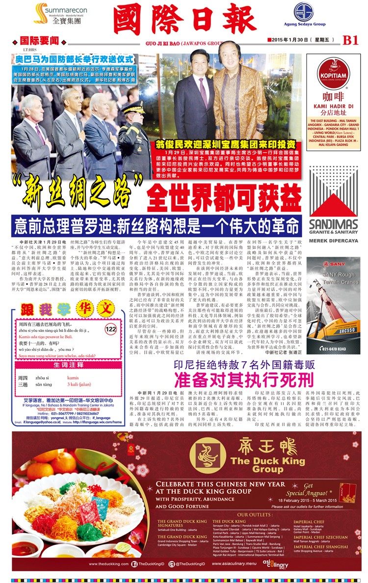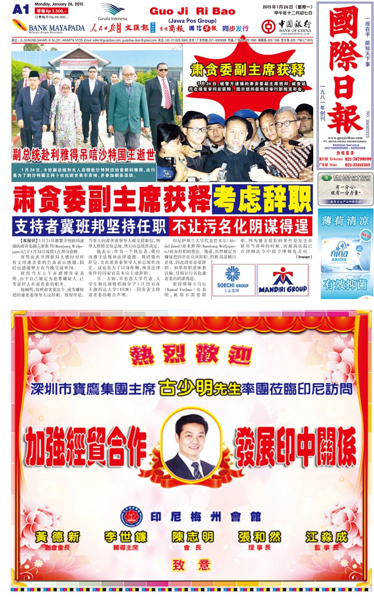 印尼梅州會(huì)館在《國(guó)際日?qǐng)?bào)》刊圖歡迎古少明主席一行訪問(wèn)印尼