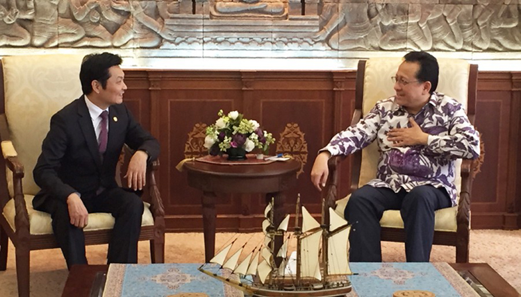 古少明主席與印尼地方代表理事會(huì)主席伊爾曼·古斯曼在印尼國(guó)會(huì)進(jìn)行會(huì)談