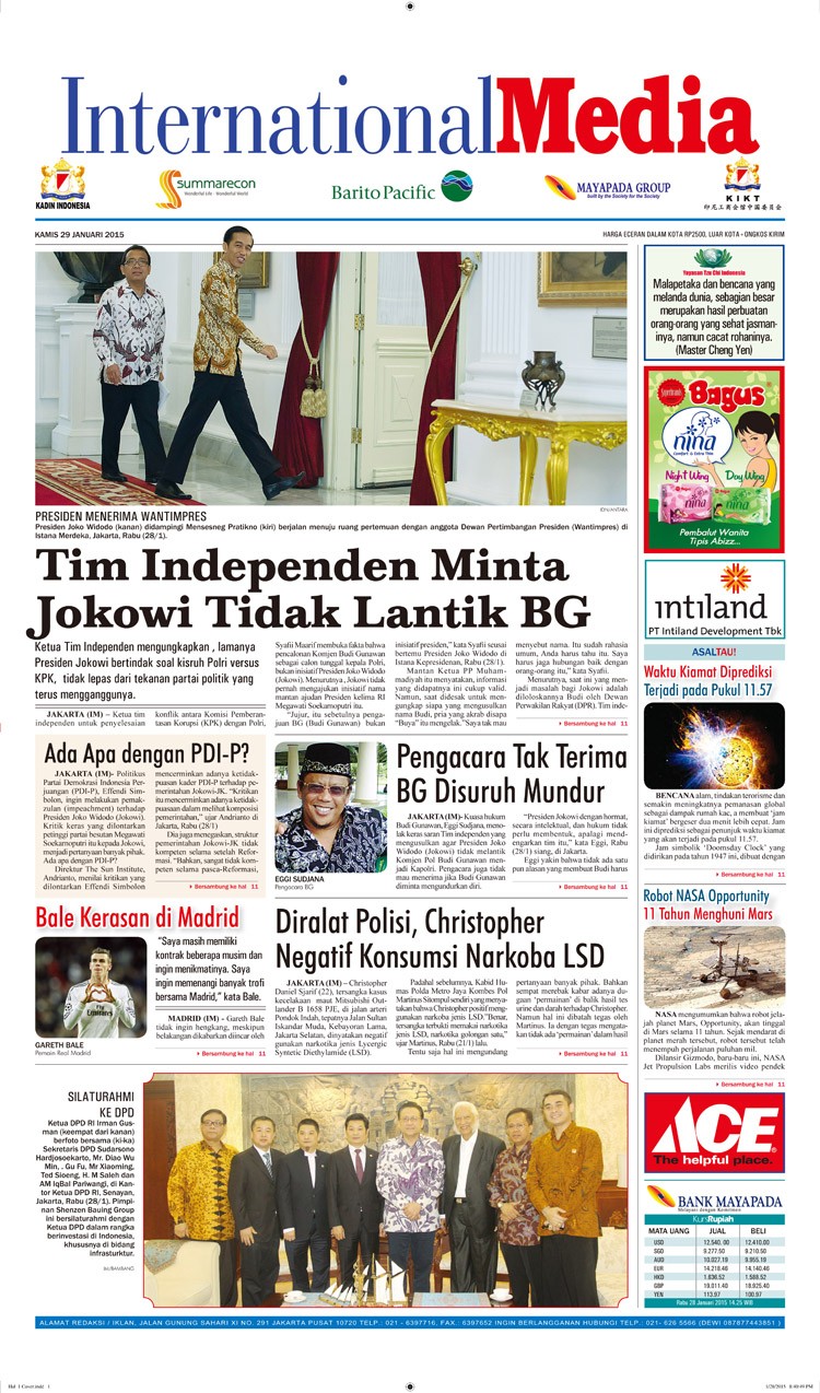 印尼文報(bào)紙《International Media》頭版報(bào)道古少明主席一行拜訪印尼地方代表理事會(huì)主席伊爾曼·古斯曼