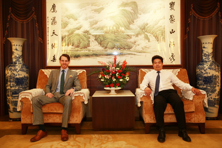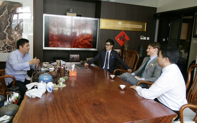 詹姆斯在和古少波董事長(zhǎng)、古樸副總裁、吳義課總裁助理會(huì)談